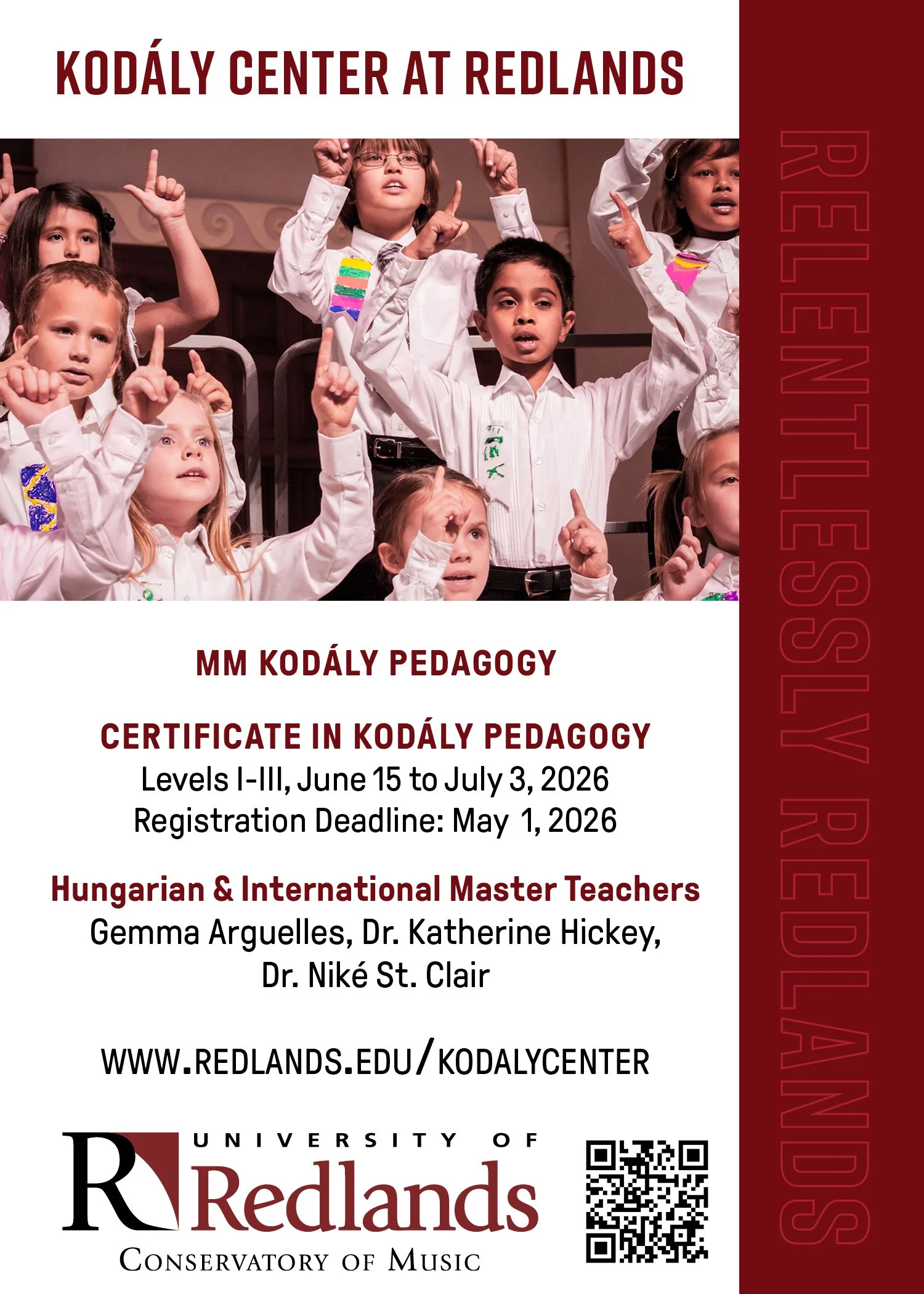 KFME is excited to be able to offer scholarships to support the 2026 Kodály Summer Certificate at the University of Redlands.